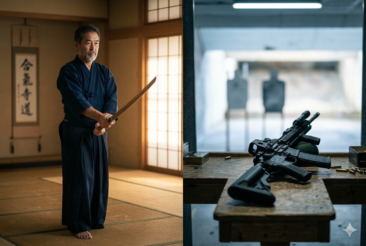 Moderní taktický střelecký výcvik a bojová umění sdílejí hluboké principy: postoj, integraci zbraně a těla, konzistenci, bezpečnostní kulturu, ekonomii techniky. V těchto bodech jsou si vzácně blízké. Ale liší se v jednom klíčovém aspektu: střelecký výcvik nikdy neztratil kontakt s realitou, pro niž existuje.